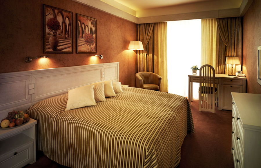 Izby SUPERIOR DOUBLE ROOM DE LUXE sa nachádzajú na 5. a 6. poschodí hotela a ich súčasťou je priestranný šatník.