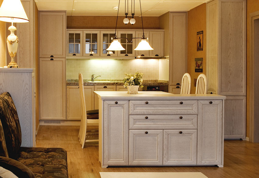 telefón, trezor, minibar, kúpelňa s vaňou, sedačka, balkón, plne vybavená kuchyňa (indukčná rúra s platňou, mikrovlnka, chladnička, práčka, umývačka riadu, varná kanvica)